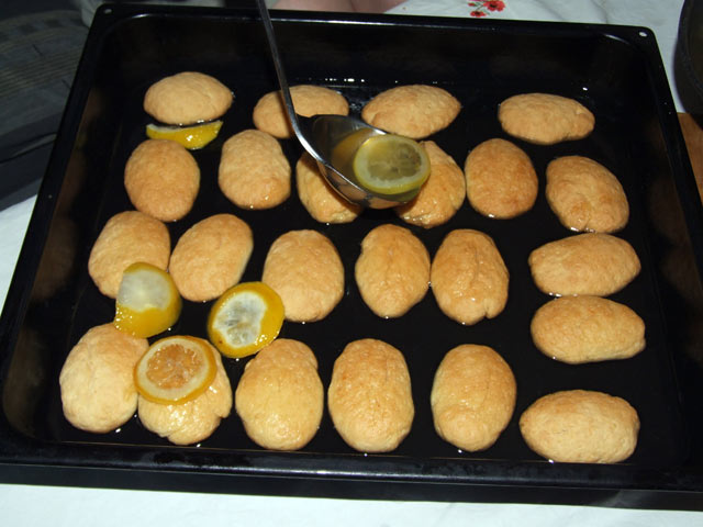 - Vodu, šećer i vanilla šećer staviti u šerpu da provri, dodati kolutove limuna i kuvati na laganoj vatri 15tak minuta, dok limun ne postane staklast.