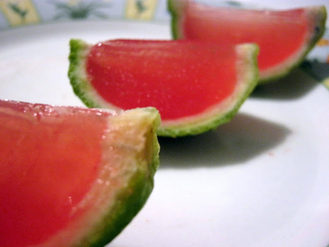 Izgleda kao lubenica, ima ukus kao lubenica, ali nije lubenica :) Čuveni američki shotovi od želea, ali na prefinjen način. Koliko god da ih napravite za žurku, neće biti dovoljno, tražiće se jedan više, govorim iz iskustva:)