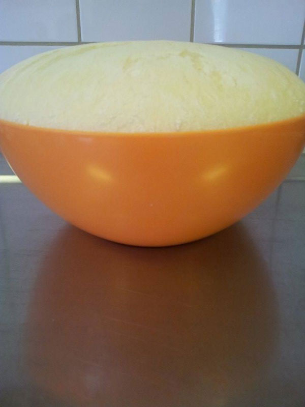 - Umesiti gusto testo, premesiti rukom da bude lepo umeseno zatim ostaviti da nadođe u duploj veličini.