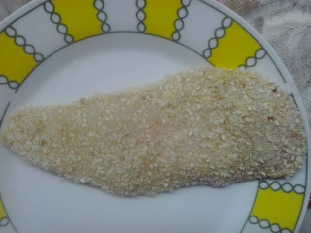 - Pileći file isjeći na 4 jednaka komada, panirati ih i pohovati u zagrijanoj dubljoj masnoći.