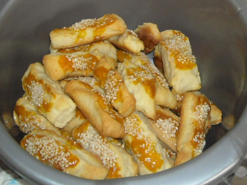- Štanglice premazati umučenim žumancetom, posuti susamom i peći u zagrejanoj rerni na 200 stepeni dok ne porumene.